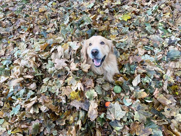 Well as you can see, Acer does not care about seasons. Winter is upon us and Acer is playing in the leaves. He’s practicing for the Super Bowl, doing a kind of “Where’s Waldo” in the leaves thing.